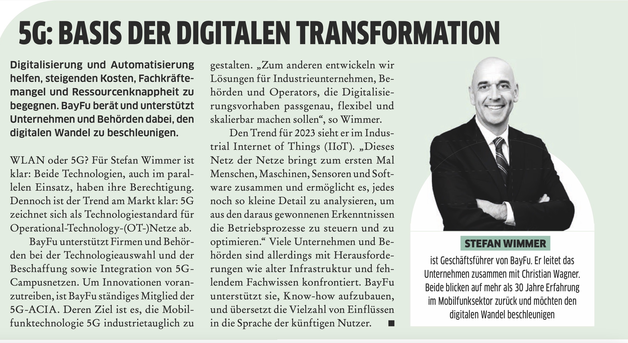 BAYFU on 5G - A contribution to digitalization and sustainability in the DUP Entrepreneur Magazine 2023