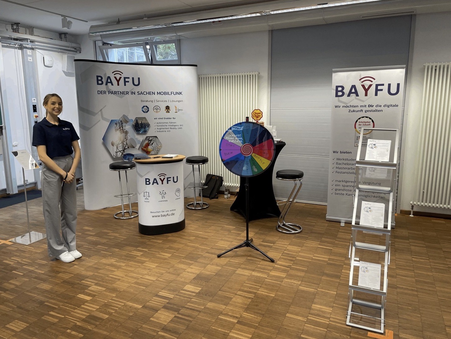 Auch wir als BAYFU waren mit unserem Messestand vertreten. Mit vielen Gadgets und wichtigen Informationen lockten wir die Studenten an. Ziel war es mit einigen Studenten in Kontakt zu treten und unser Team und unsere Tätigkeiten zu präsentieren. Es ist eine gute Gelegenheit mit zukünftigen Nachwuchskräften Kontakte zu knüpfen und die offenen Stellen zukünftig zu besetzen.